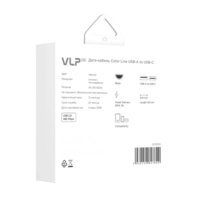 Силиконовый кабель с поддержкой быстрой зарядки PD до 60W передачи данных по протоколу USB 2.0. Гибкий, износостойкий, не запутывается.